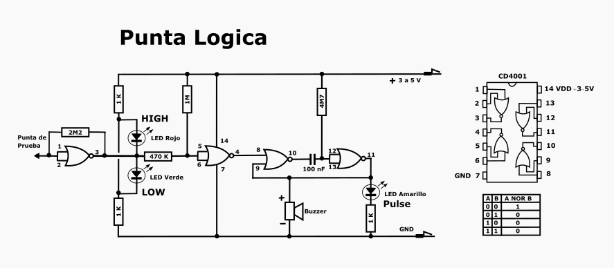 Un probador lógico o punta lógica TTL es una herramienta de diagnóstico esencial para detectar niveles lógicos altos, bajos y pulsos en circuitos digitales de las familias TTL, DTL y CMOS.